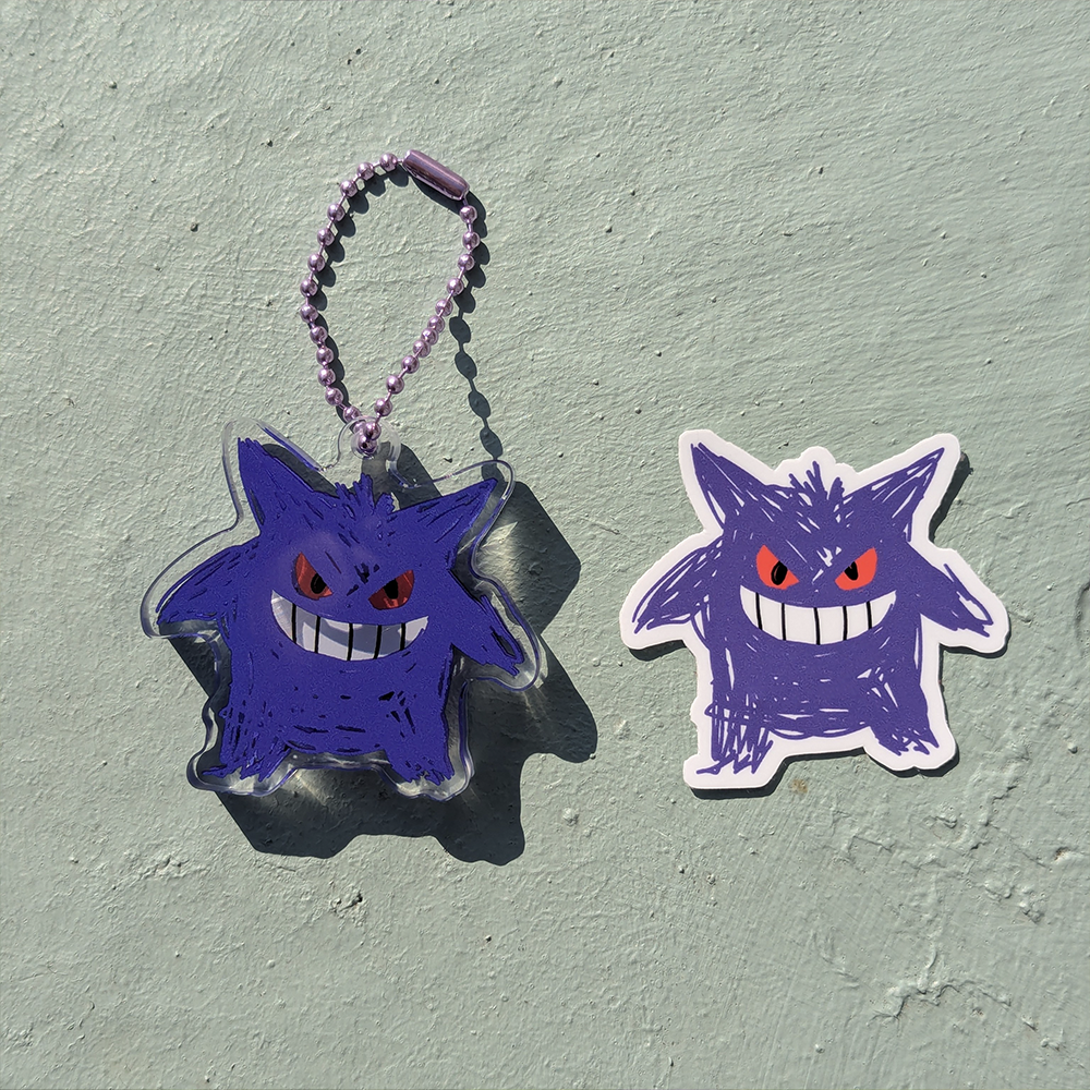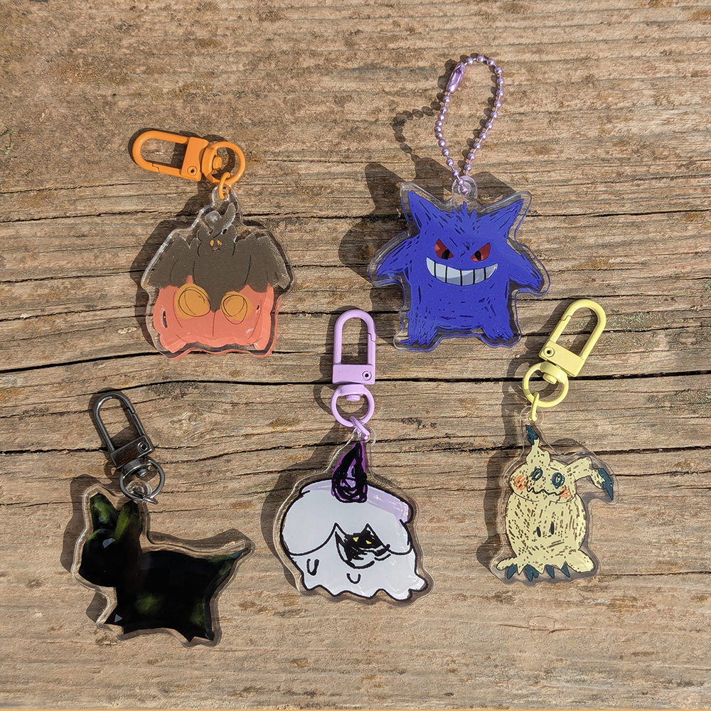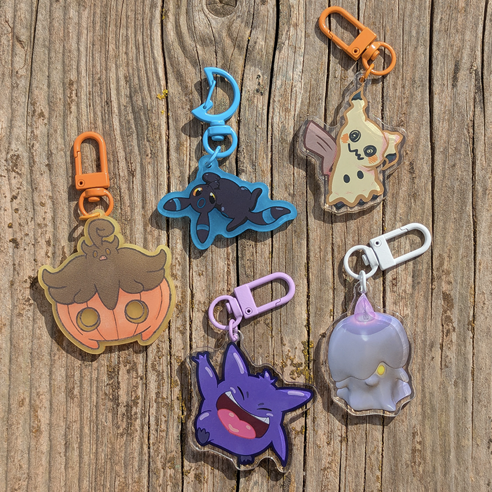 Trick or Treat! Which will you get? Each blind bag contains an acrylic charm that could be either a trick – a deliberately jankily drawn design – or a treat – a deliberately beautifully drawn design! Every bag also contains a sticker, and some Halloween candy.